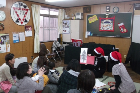 ♪最近、さくらちゃん(1歳3ヶ月)とママがよく来てくださっています。 【福知山YMCA第34回席上書初大会】小中学生から大人までどなたでも参加いただけます。 2011年1月10日(祝)9:30-11:30京都府立中丹勤労者福祉会館4階 参加費\500 12月20日は2010年最終のYMCAブッククラブでした。さくらちゃんとママ、智子さんが来てくださいました。先週の月曜日から冬の間(来年2月くらい?)まで、10時半から正午、堀宅ですることになりました。 ♪フラワーアレンジメントレッスンは、12月24日13時からです。今回は会場がYMCA会館ではありません。 講師は L’Atelier chou-chou・牧野修代さん、レッスン料は11月から4,000円(プリザーブドフラワーのときには5,000円)です。 11月のフラワーアレンジメントレッスンは11月26日(金)14時からでした。 11月29日(月)、事務局・堀急用のためブッククラブをお休みさせてください。たびたびごめんなさい。 11月15日(月)、事務局・堀急用のためブッククラブをお休みしました。ごめんなさい。 2010年11月のブッククラブは、11/1, 8, 15, 22, 29の各(月)10:30-12:00です。 2010年10月のブッククラブは、10/4, 18, 25の各(月)10:30-12:00です。 10月4日(月)、新しいお友達が参加くださいました。さくらちゃんとママです。これからよろしくお願いします♪ 9月になってもこの猛暑。こたえますね。 夏休み中全5回のブッククラブは、主に西山美也子さんと私で図書の整理を行いました。青少年読書感想文全国コンクール課題図書も夏休み中にそろえましたので、少しきれいになったYMCA会館へ、9月からもどうぞお気軽にお越しください(^^) 9月のブッククラブ=9月6日(月)、9月13日(月)、9月27日(月)の3回。各10:30〜正午、福知山YMCA会館にて。9月20日は祝日のため休みます。 夏休み中のブッククラブは、毎週(月)午前10時30分から正午 7/26, 8/2, 8/9, 8/23, 8/30の5回 8/16(月)は休みます。 会費 :ひとり1回200円(読書感想文を書いたり、図画工作をしたりするときには、時間を延長したり、別に費用がいることがあります) 7月26日はYMCA会館の本の整理をするので、よかったらご協力ください。今のところ美也子さんと私の2人なので(^^; 7月20,21日と「第25回クリーン弘法川&魚つかみ大会」(福知山YMCA/福知山ワイズメンズクラブ、篠尾新町・下篠尾自治会・子ども会 共催)でした。このホームページで告知できず終了したの、10年間で初めてかも? 弘法川、年々きれいになります。草が茂っているだけでゴミはずいぶん減りました。ありがとうございます!! 両丹日日新聞にご掲載いただきました。「きれいな川で魚つかみ 子どもたちが歓声」 おはようございます。いつもありがとうございます。さて急にごめんなさい、本日7月5日(月)大阪出張のため、YMCAブッククラブお休みします。来週は通常通りの予定です。暑いけどお元気で! 5月24日記=5月例会は、5/10(フラワーアレンジメント:希望者のみ), 17, 24, 31です。その他、5月31日(月)午後1時30分〜2時30分、YMCA会館にて、花器を見学できます。 6月は、7日(月)は、下記学校読書ボランティアの会に合流のためYMCA会館ではお休み、 6月14日(月)は、10時よりフラワーアレンジメント(希望者のみ 参加費3500円+YMCA会費300円)、 6月21日(月)、28日(月)は、平常通り10時半から正午です。 第11回学校読書ボランティアの会 @日時 平成22年6月7日 (月)10時〜12時 A場所 市民会館24号室 B対象 読 書ボランティア、その関係者、また学校読書ボランティアに興味をお持ちの方 C内容 学校での活動の様子を話 し合う・読み聞かせをした本の紹介 4月19日記=本日の福知山YMCAブッククラブはお休みしました。 来週4/26も学校読書ボランティアの会(広報ふくちやま3月1日号に載りました)に合流しますので、YMCA会館でのブッククラブはありません。5月3日(祝)には第45回福知山市子ども大会に協力して、福知山市三段池体育館内で恒例「えほんのひろば」を開設します。屋外では福知山ワイズメンズクラブとともに竹細工コーナーも。どうぞお立ち寄りくださいね。 そんなこんなで、福知山YMCA会館でのブッククラブは5月10日(月)スタート予定です。今年度もどうぞよろしく!! 2010年2月13日でブッククラブは15歳になりました。 そして早3月。3月の例会は8日(月)、15日(月)各10時半から正午の2回のみ、YMCA会館にて。3月8日はプチフラワーアレンジメントもする予定です。3度目ですね。お楽しみに♪ 京都府地域力再生プロジェクト、来年度からも継続されるそうです。 ずいぶん前に思われますが、2年前、YMCAブッククラブが京都府地域力再生事業交付金をいただいて実施したアンケートをまとめたもののWEB版、こちらです。 http://www3.ocn.ne.jp/~kyotoday/lib-v2008letter.htm 【2009年のできごと】 2009年も1年間大変お世話になり、ありがとうございました。 12月14日(月)には、福知山YMCAブッククラブのクリスマス会に、いつもお越しになってる方の口コミで、大人9名、お子さん11名のご参加があり、賑やかでした。 学校読書ボランティアの会のホームページができました。クリックしてください。 【第8回